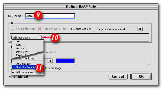 For example, if you wanted to consider anything with a score of 3 or more to be spam, the rule would look like: 'X-SpamDetect: ***'. Decreasing the number of asterisks will result in classifying more e-mails as spam. You may need to check your spam folder more carefully for non-spam e-mails that might have been classified as spam. If you wanted to rate anything with a score of 8 or greater as spam, the rule would look like: 'X-SpamDetect: ********'. Increasing the number of asterisks may result in fewer filtered e-mails being classified as spam and more potential spam staying in your Inbox.